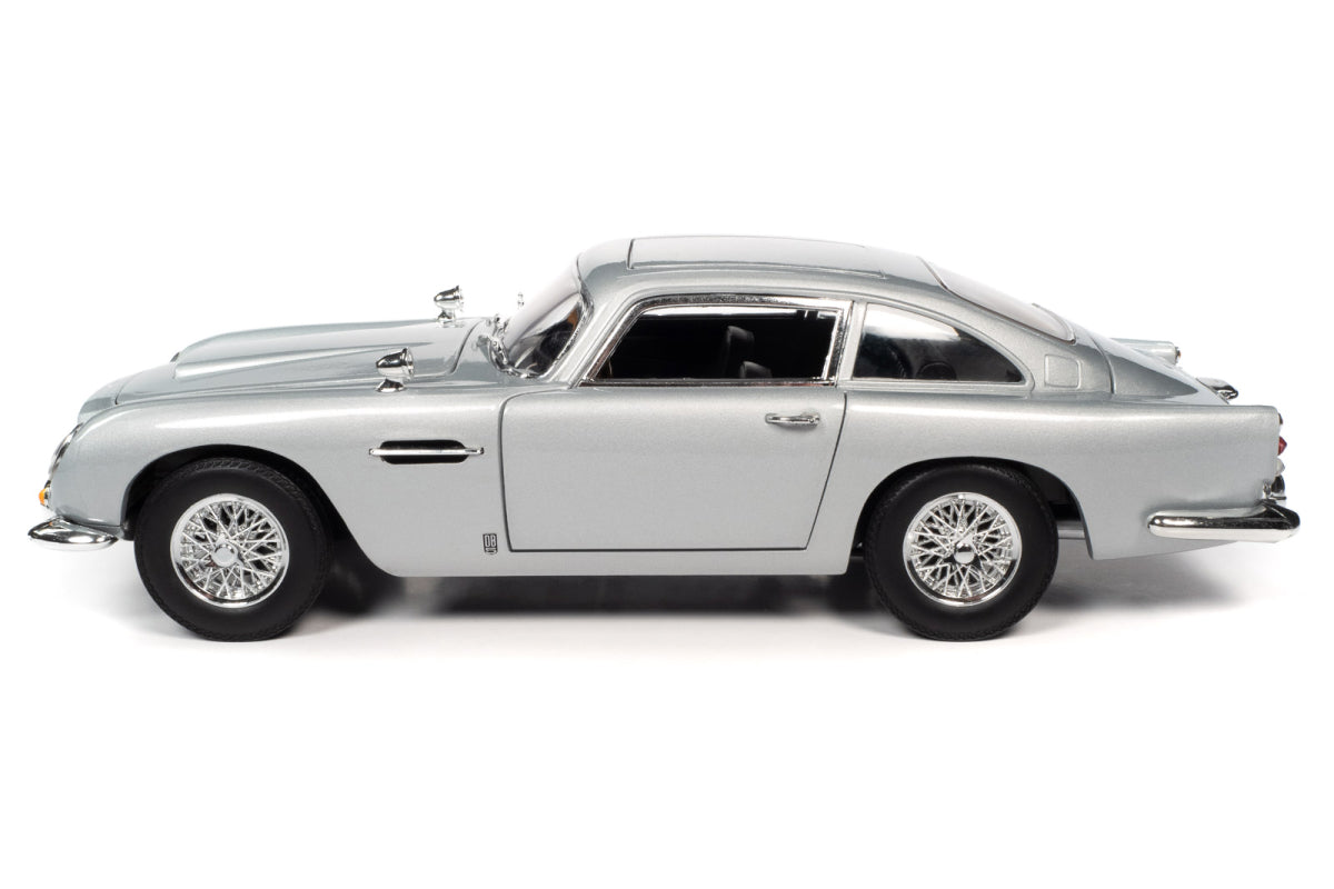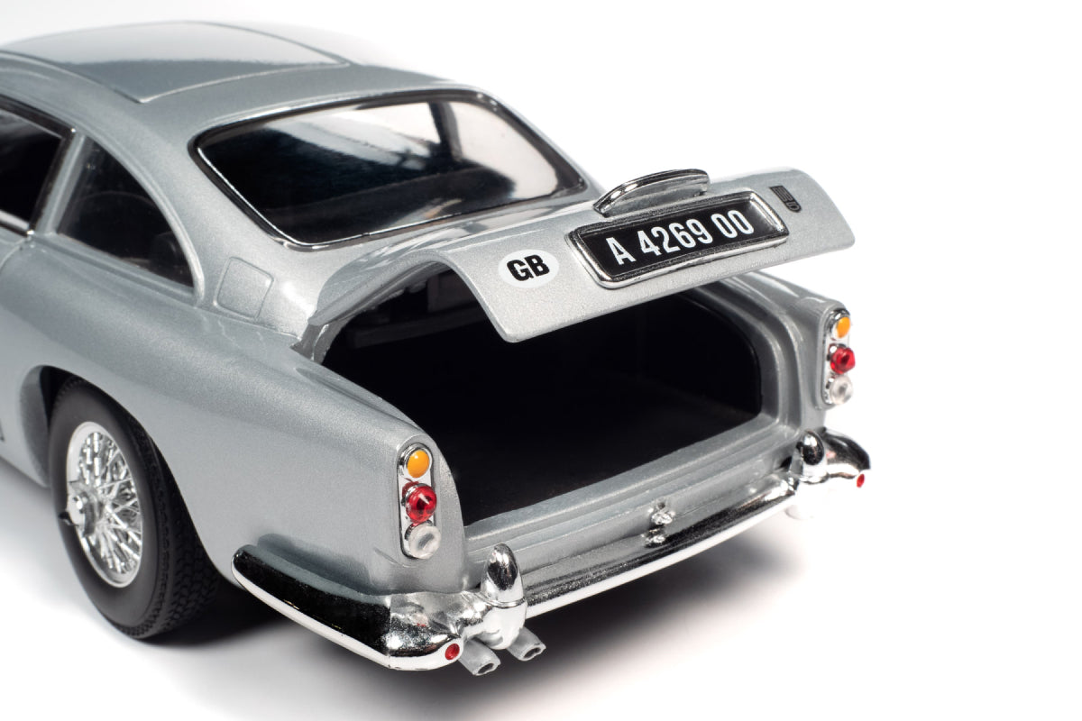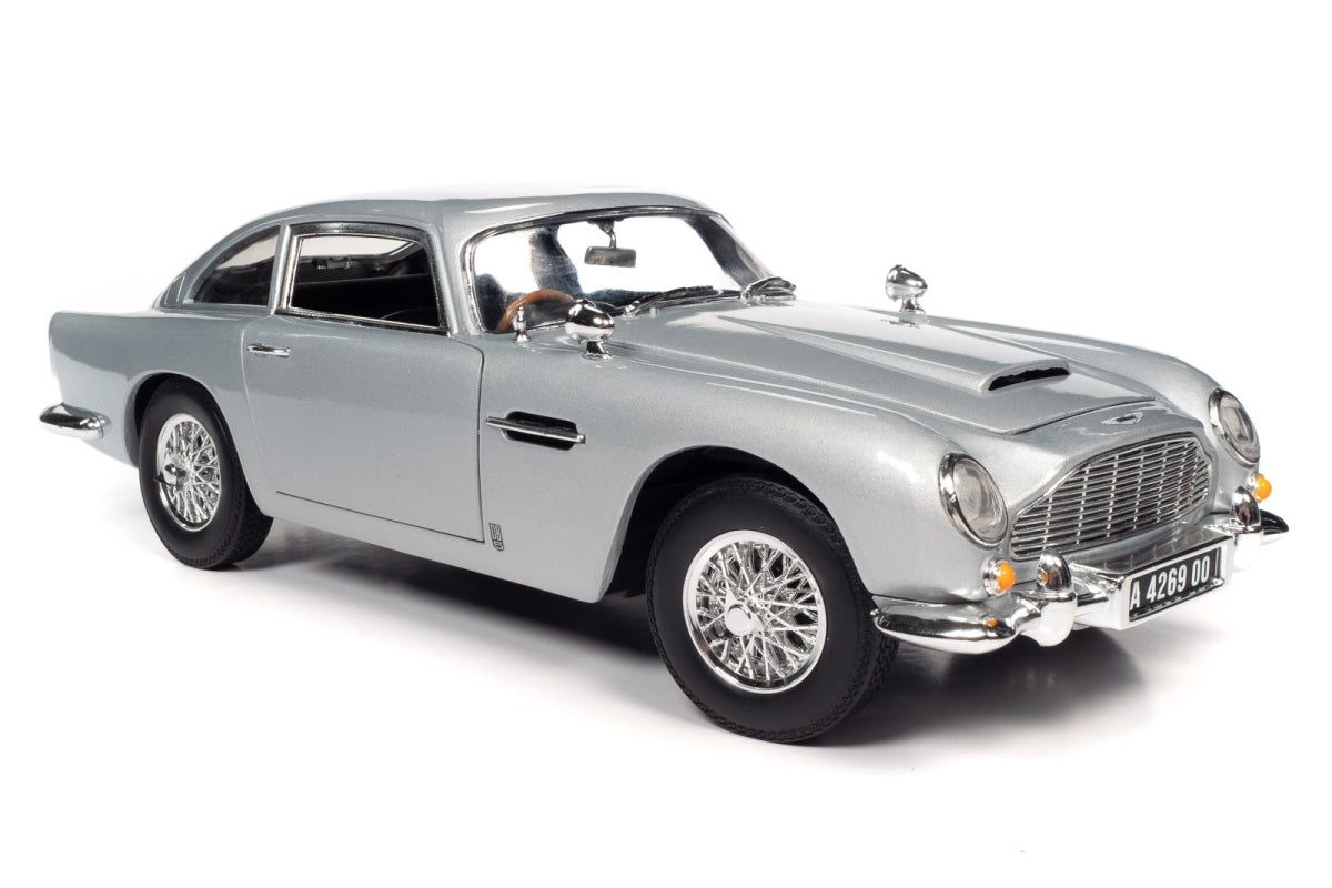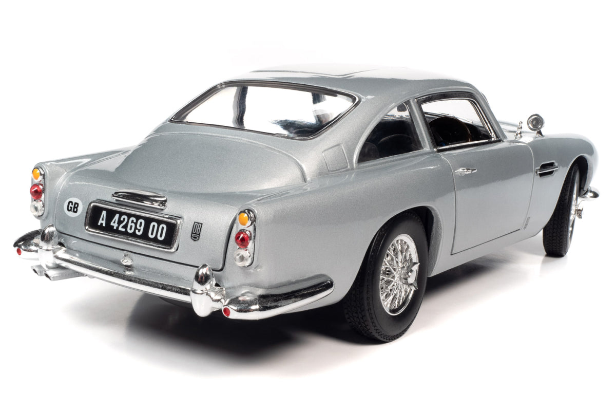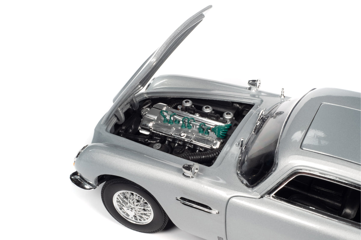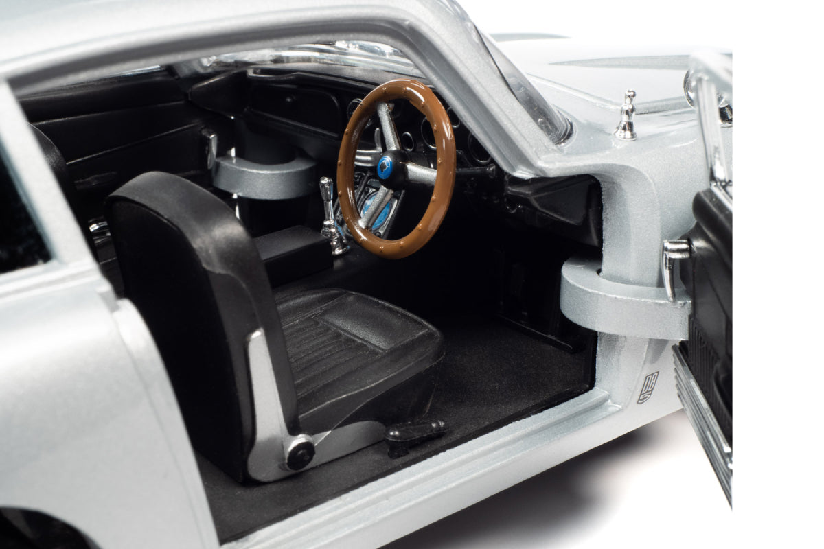 Originally from Goldfinger, the Aston Martin DB5 returned in No Time To Die with new plates and gadgets. This Auto World replica has silver birth exterior, a detailed engine, steerable front wheels, and accurate interior and chassis, opening doors, hood, trunk and 007’s "escape hatch" roof!