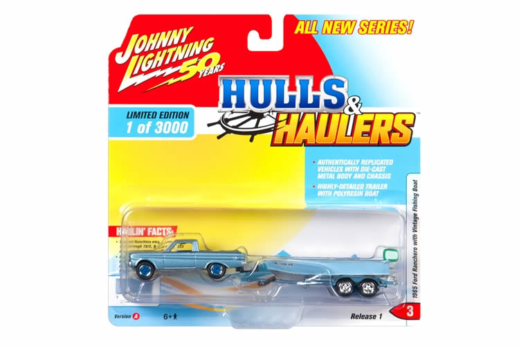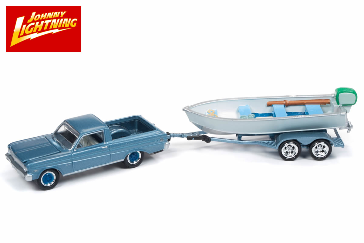 1965 Ford Ranchero in silver blue, with Vintage Fishing Boat.