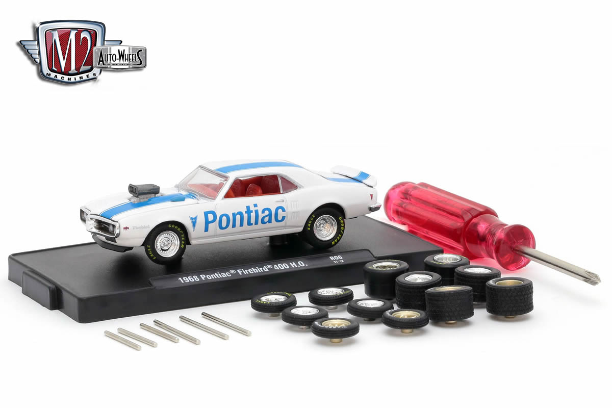 1:64 scale kit that includes a 1968 Pontiac Firebird 400 H.O., six pairs of wheels, rubber tyres, axles and a screw driver - great for those who customise their own cars, or a joint project with the kids.