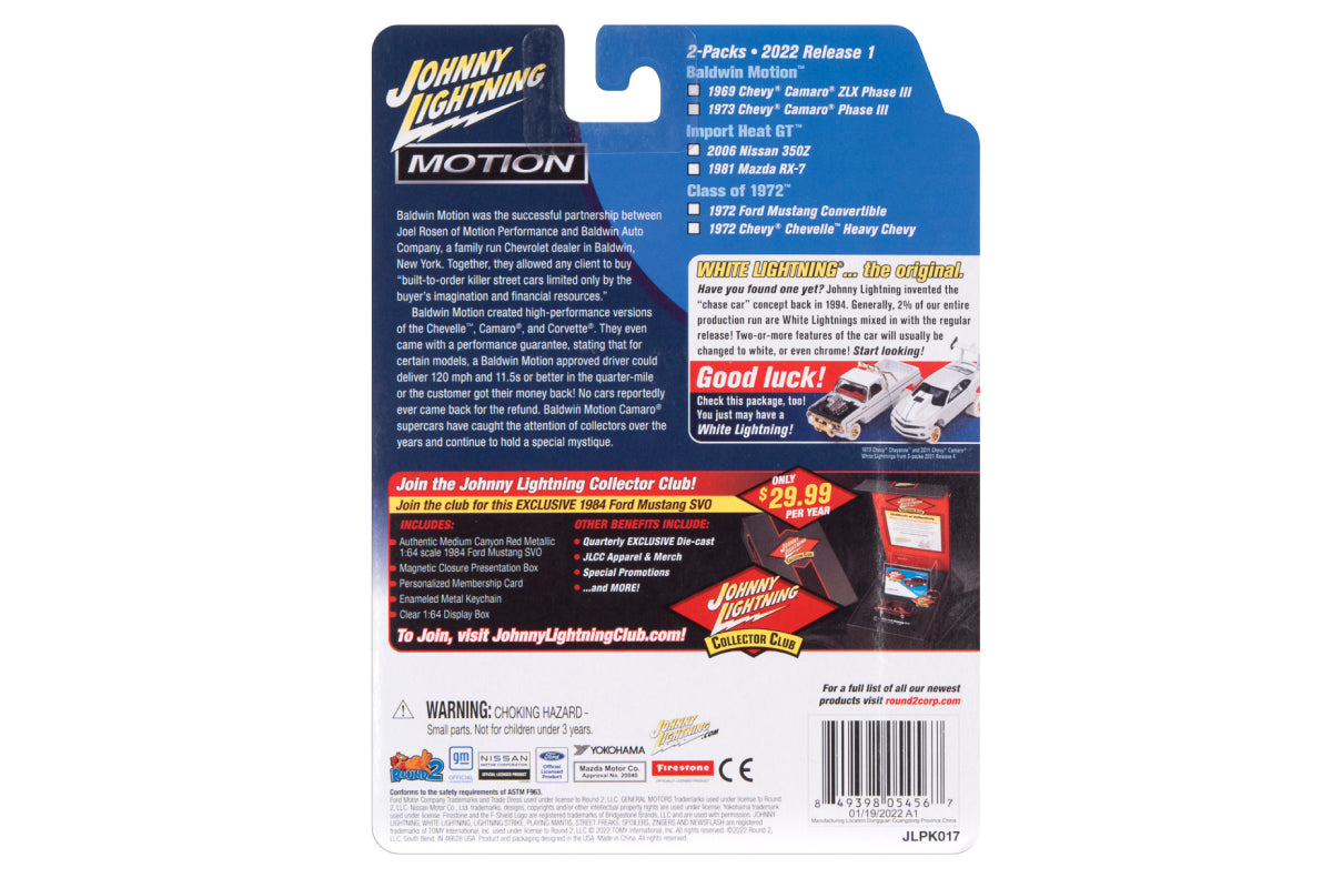 Johnny Lightning’s limited edition 2-car sets! Twice the fun, twice the quality, twice the value! Each set comes with two highly-detailed chassis replicas. 2022 Release 1 (JLPK017).