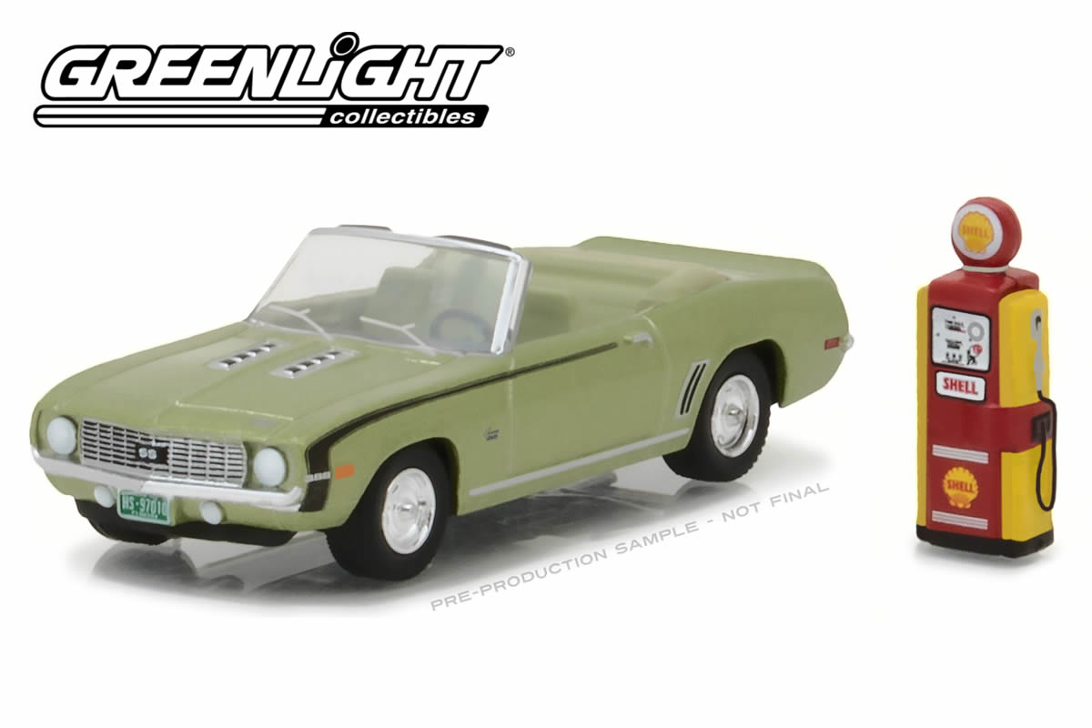 1969 Chevy Camaro Convertible with Vintage Gas Pump