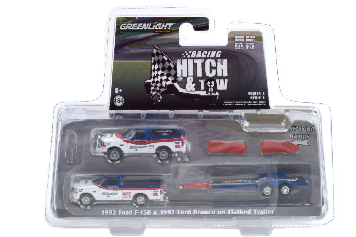 1992 Ford F-150 and 1992 Ford Bronco BFGoodrich Rough Riders on Flatbed Trailer